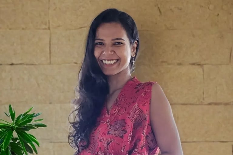 After a career as a news journalist and corporate executive in Mumbai, she chose to leave her hectic big city life and start her journey as a sadhak or seeker, eventually finding new meaning and joy as a yoga and meditation teacher in Goa.